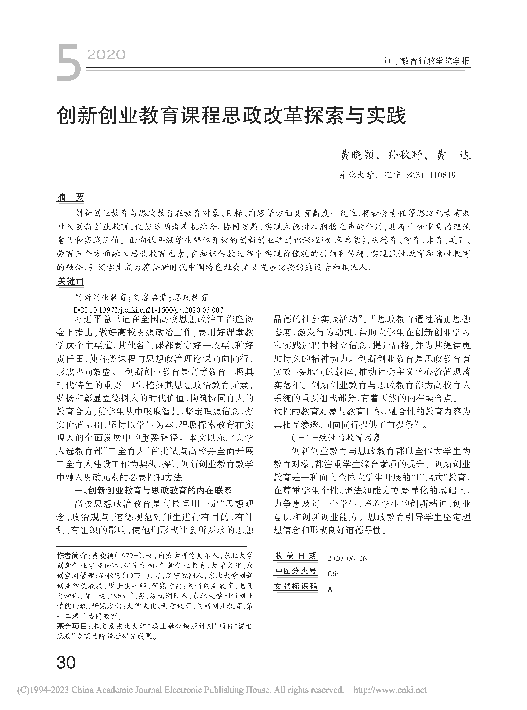 创新创业教育课程思政改革探索与实践 |